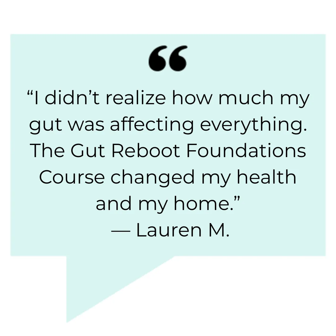 This course is completely safe. You’ll learn gentle, gut-supportive practices that help every digestive system, whether you’re dealing with bloating, constipation, loose stools, reflux, or IBS symptoms. However, if you have known gut issues, it is always best to test your gut and have a customized protocol developed for you that goes along with the habits you will build from the course. Check out the Gut Reboot Program for gut testing and get this course as a Free bonus!